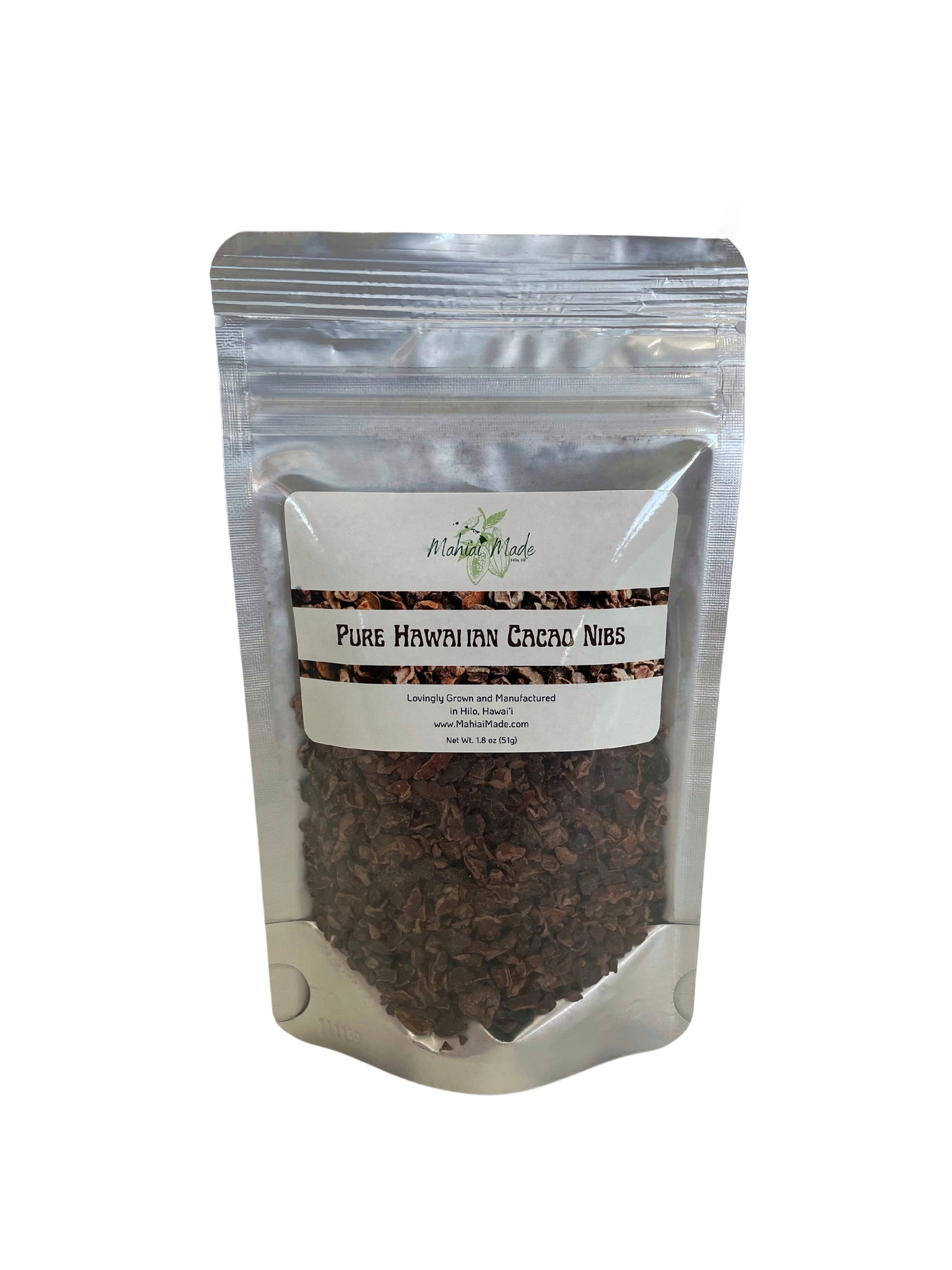 I heard that proanthocyanidins (a type of flavonoid found in many plants, known for their potent antioxidant and anti-inflammatory properties), were in cacao nibs and I wanted to buy local. These are really delicious with greek yogurt and blueberries. The bitterness of the cacao nibs balances out the tartness of the yogurt and blueberries. But I also eat them by themselves as a little snack. I practically eat these everyday! Mahalo for such a great product. I will be buying more as soon as I run out.